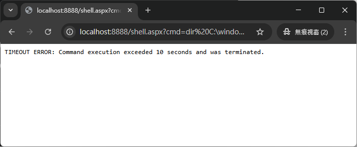 Response.Write("<h1>ASPX Command Shell (with 10s Timeout)</h1>");