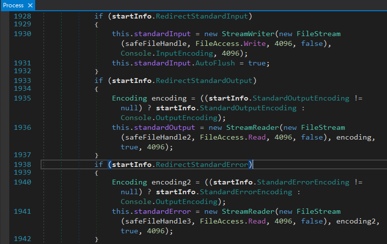 我打開 Process 的程式碼調查,也驗證了確實存在 buffer,這個 buffer 甚至只有 4,096 個 bytes,怪不得有時候 dir 會動,有時又突然不動了。
